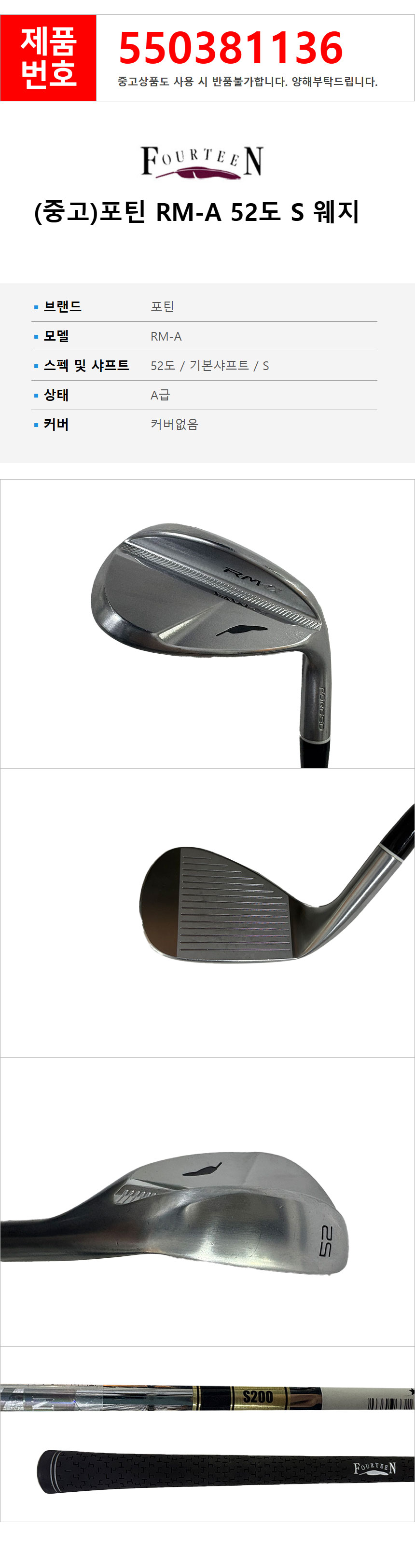 > (중고)포틴 RM-A 52도 S 웨지 550381136