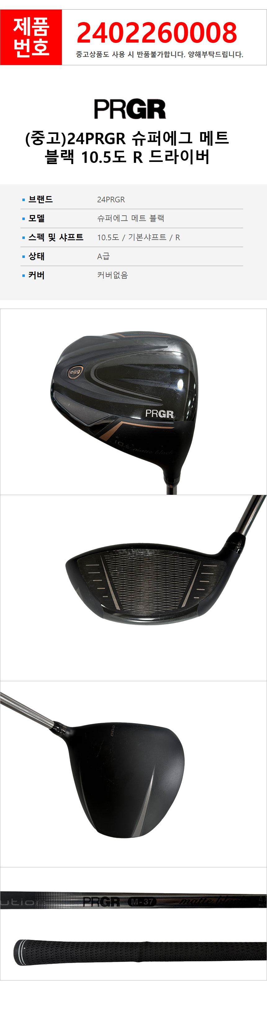 > (중고)24PRGR 슈퍼에그 메트 블랙 10.5도 R 드라이버 2402260008