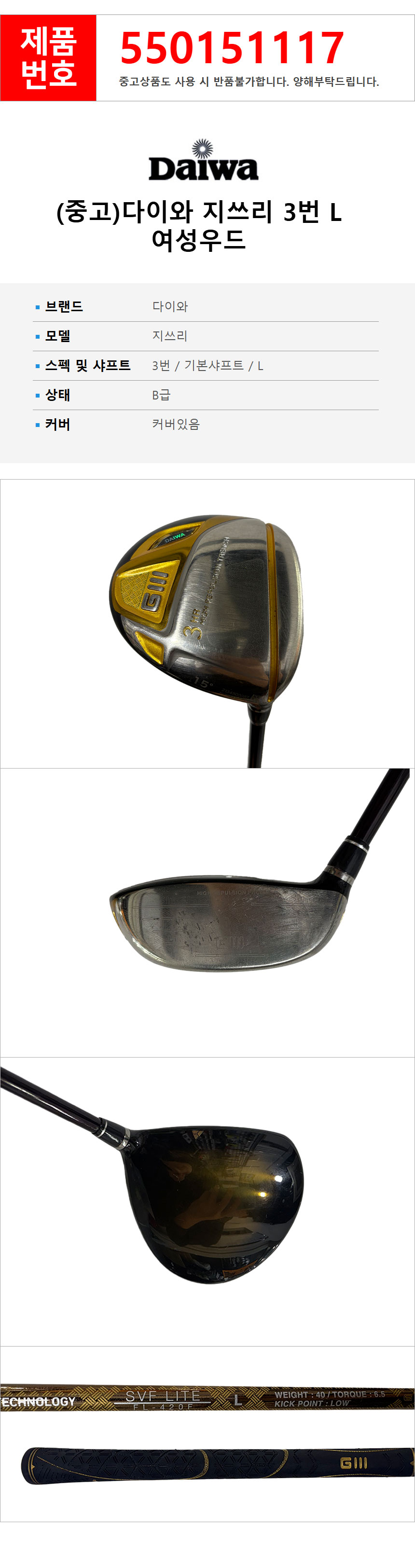 (중고)다이와 지쓰리 3번 L 여성우드 550151117